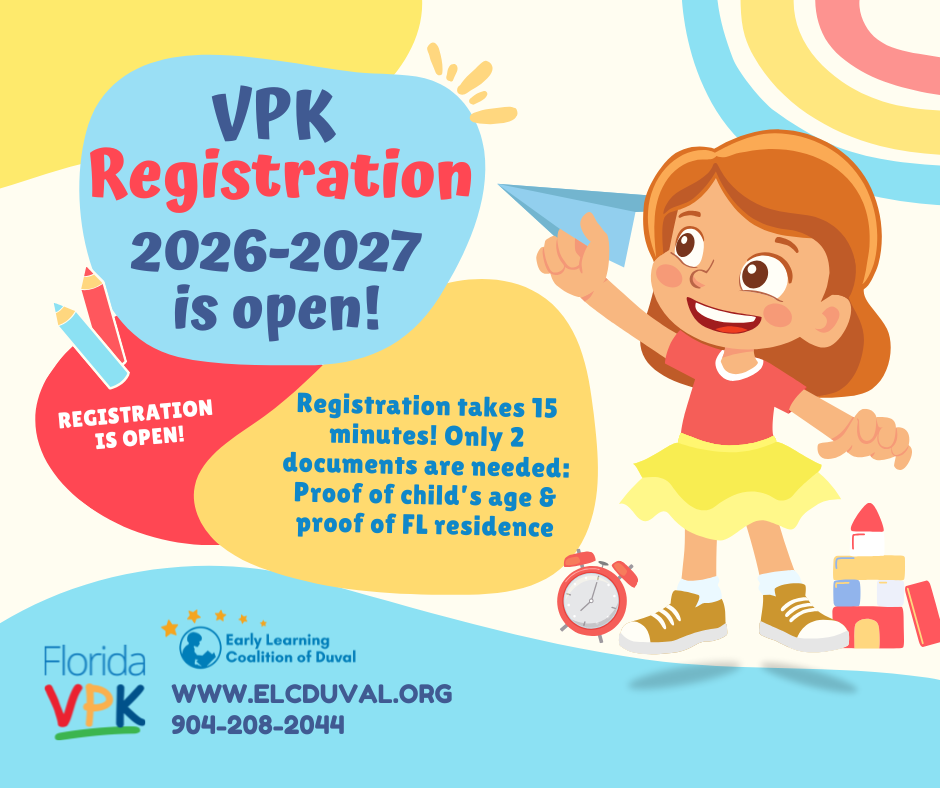 Want to advertise your VPK program? The ELC of Duval has a kit for you! Download email signatures, social media graphics, and flyers! If you want your image to convey a specific message about your VPK program, email athompson@elcduval.org, and we can create one just for your center!